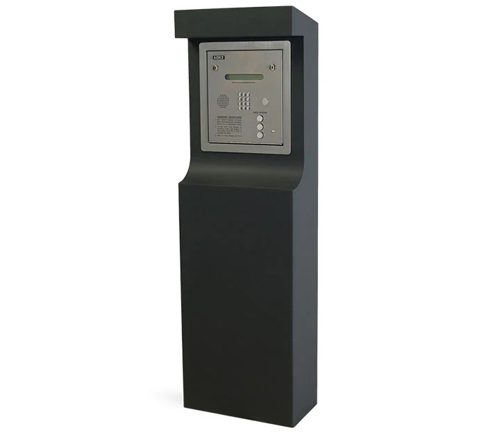 DKS offers a full range of mounting posts, whether it’s for vehicular traffic or pedestrian traffic requirements. Heavy-duty and designer style posts are typically used with the larger Telephone Entry Systems and are available in gooseneck/offset styles for vehicular traffic or straight styles for walk-up pedestrian use. The mounting Kiosks are ideal for walk-up pedestrian applications.