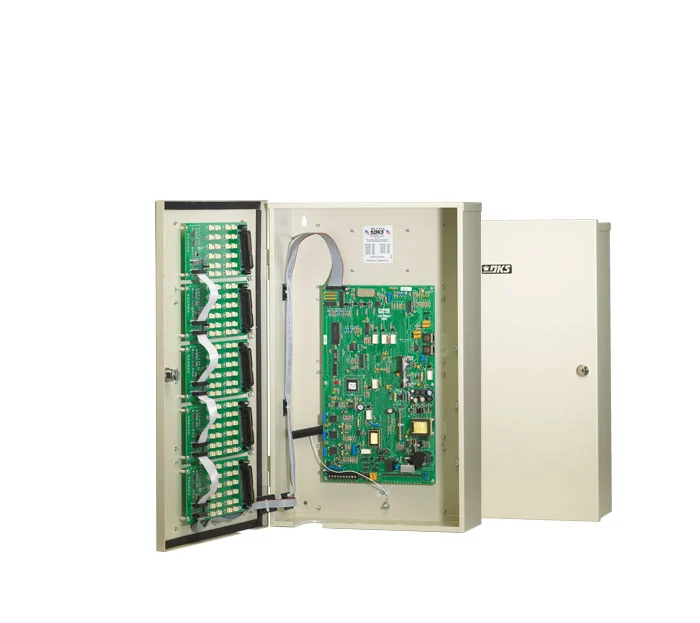 The 1816 is a component style system that consists of a lobby panel(s), main control cabinet(s) and line interface board(s). The system is built in accordance with the number of telephone lines to be interfaced with. Contact your professional DKS system installer for more information about this and other DKS products.