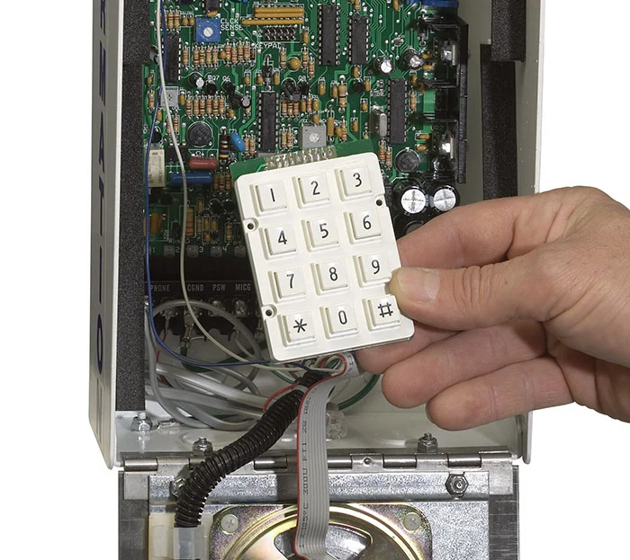 The DKS 1819 is an Information Telephone that is suited for applications that require only a single phone number to be called. Visitors simply press the single CALL button to establish communication and are easily identified by voice communication. Access can be granted or denied directly from a touch-tone telephone.