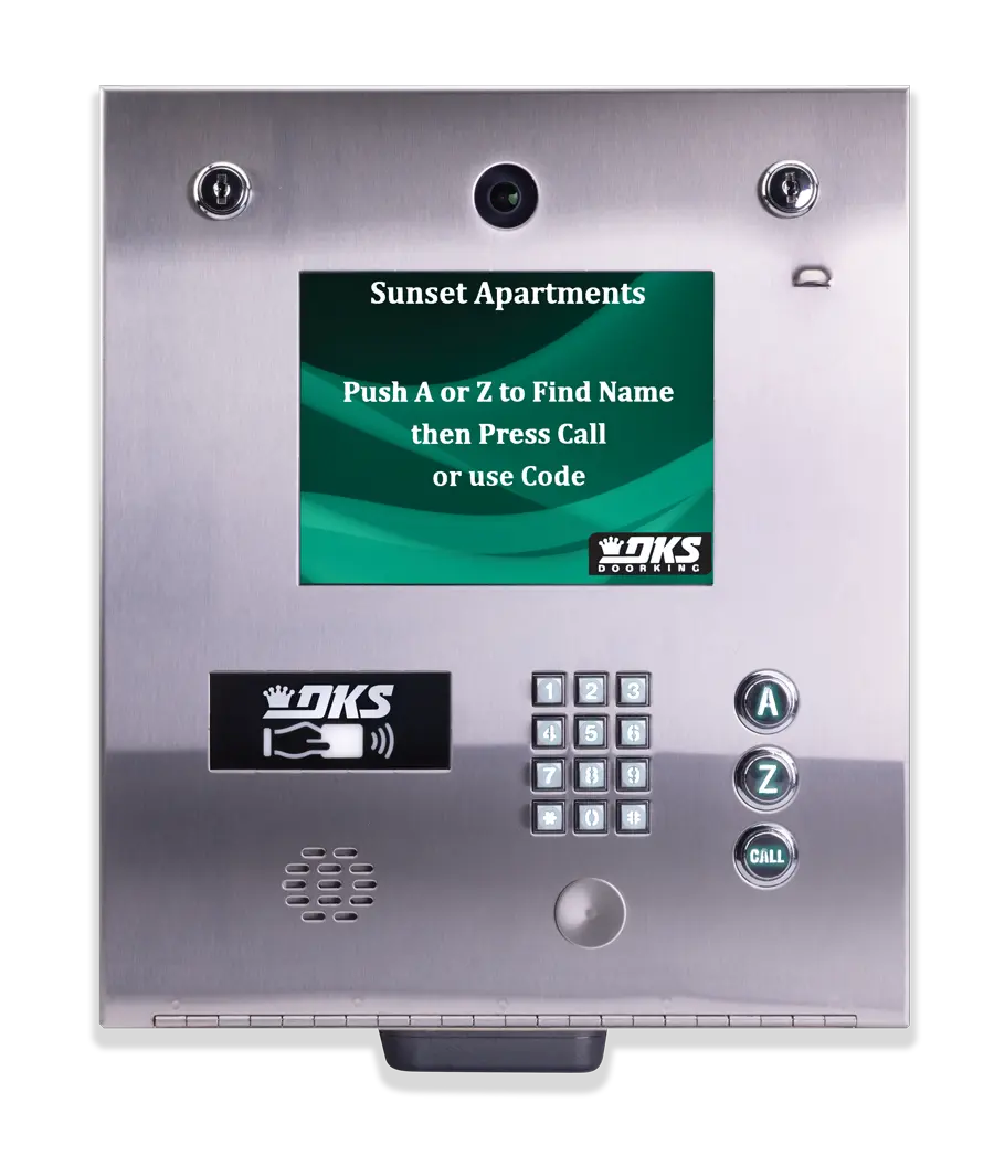 The new Full size 2137 and the Compact 2132 eVolve Video Entry Systems feature live streaming video, high contrast color screens, visitor management, expandability (up to 97 entry points) and can handle up to 10,000 users and 40,000 device codes. Administrators can easily program the System through their DKS Cloud Account using their DKS Community App with an internet-connected device. With Power over Ethernet (PoE), connectivity is simplified. Don’t have an Ethernet connection? The add-on Cellular adapter simplifies a wireless connection. For added flexibility, the system has a solar power input and operates reliably across a wide temperature range.
