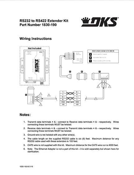 RS232-RS422 Extender Kit Part Number 1830-190 - Wiring Instructions